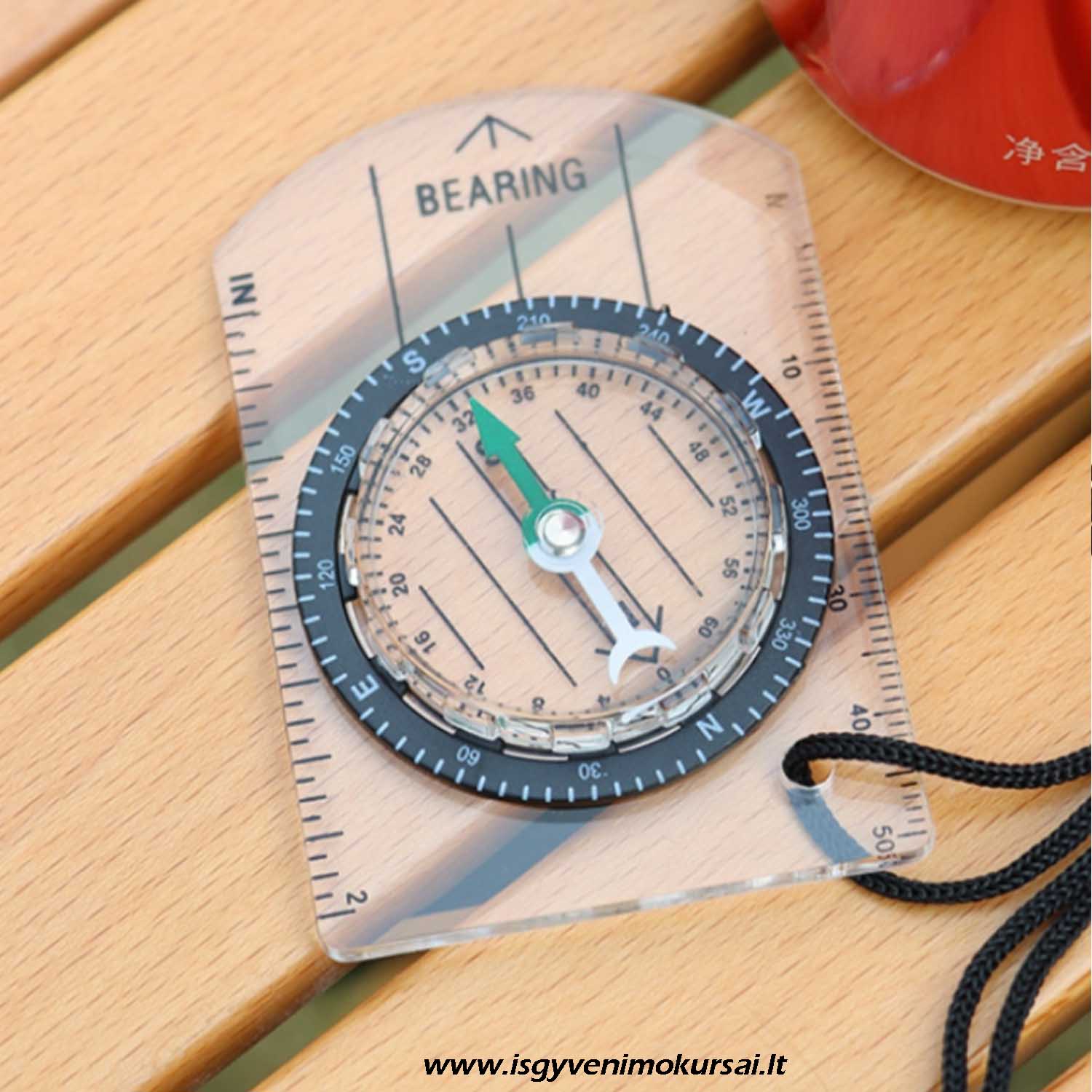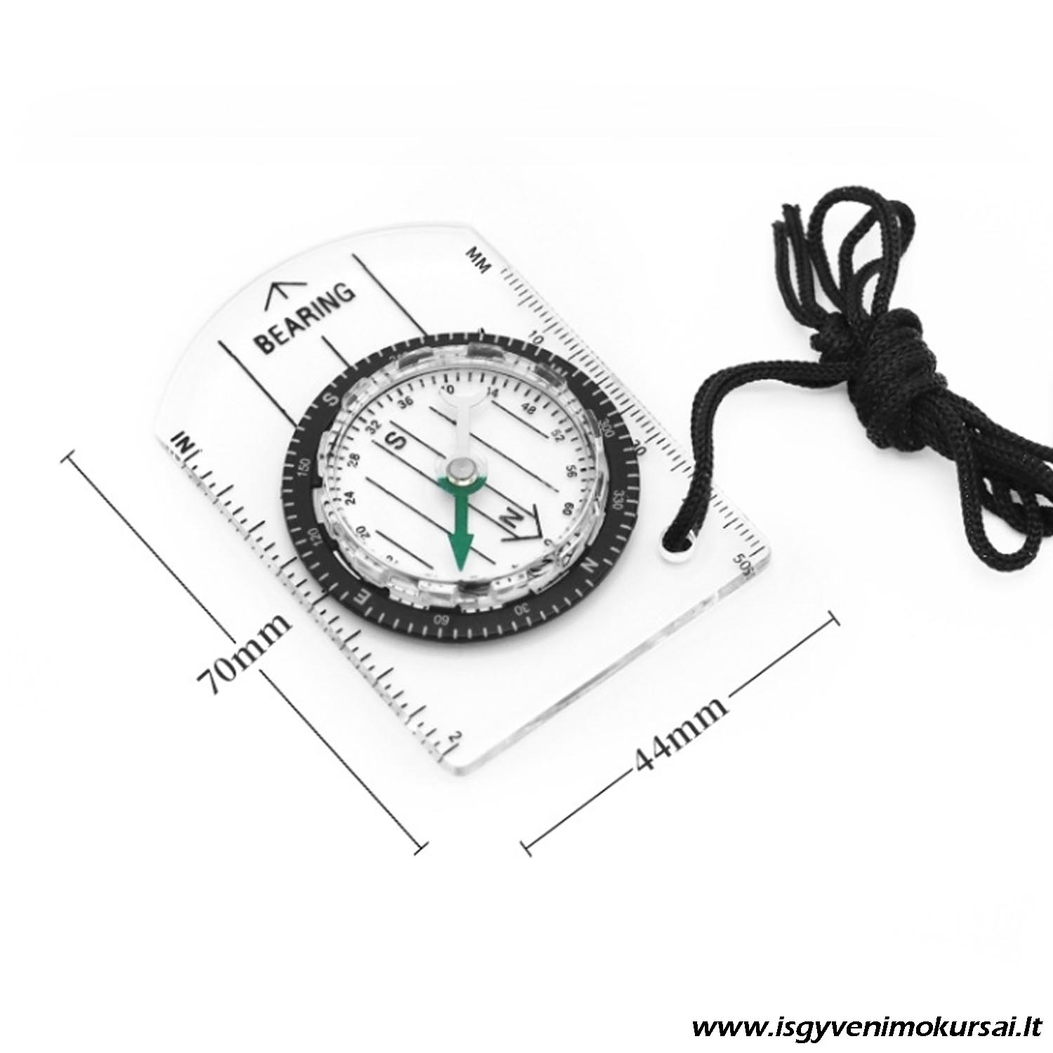Jūs gausite: vieną kompaktišką skaidrų kompasą su virvute.