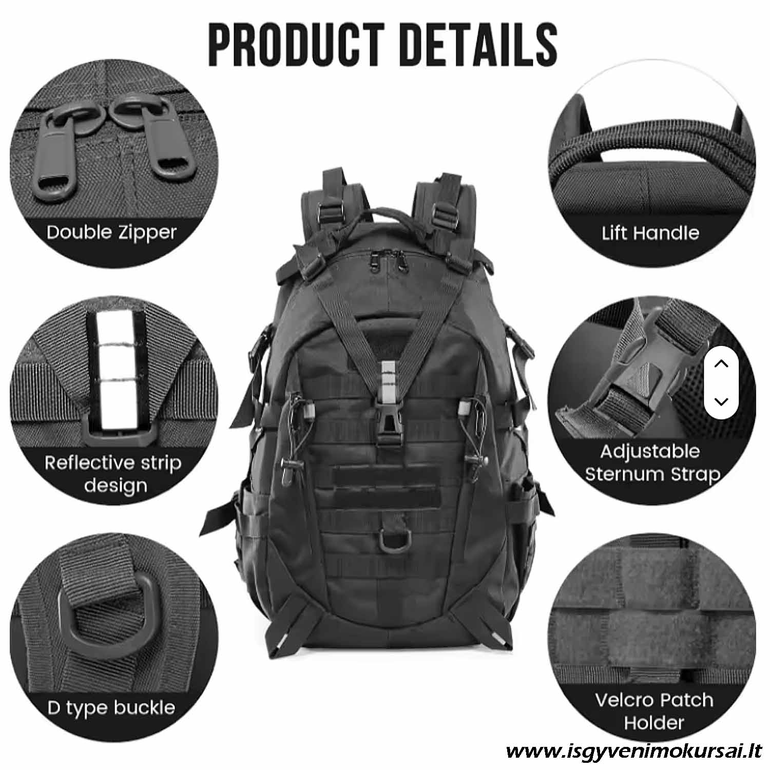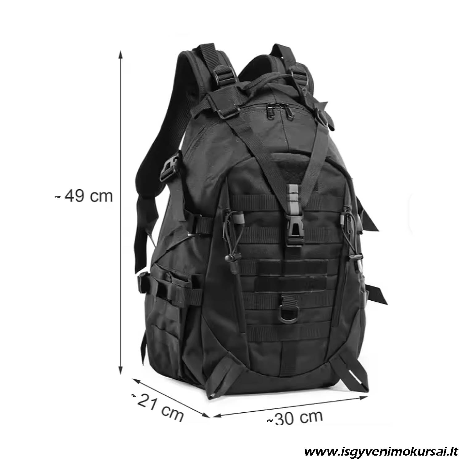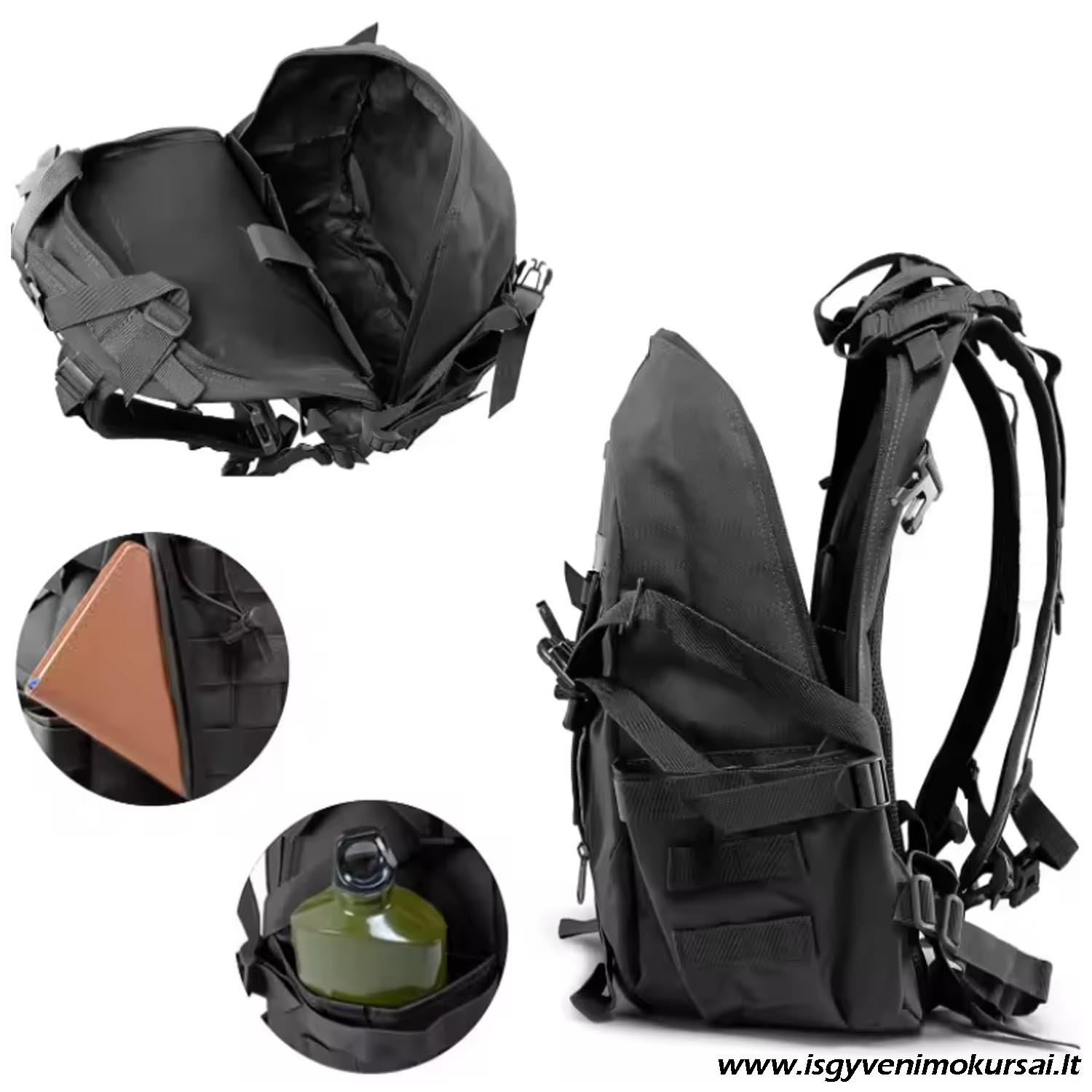 Pagrindiniai privalumai: 25 L talpa – optimalus dydis kasdienai ir kelionėms Universali paskirtis – žygiai, kelionės, išgyvenimo kuprinė, mokykla Juoda spalva – praktiška, nekrentanti į akis Patogi ir ergonomiška – tinkama ilgalaikiam nešiojimui Tvirta konstrukcija – pritaikyta aktyviam naudojimui.